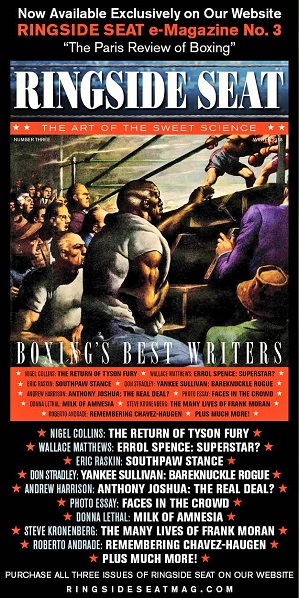 ringside seat ad from Michael 222 actual size ← Previous Next → You May Also Like Jan. 13, 1976: Hagler vs Watts January 13, 2026January 13, 2026 Michael Carbert McIlvanney On Boxing December 30, 2024December 30, 2024 Ronnie McCluskey The Wake Of The Storm August 9, 2018September 4, 2019 Michael Carbert Leave a Reply Cancel replyYour email address will not be published. Required fields are marked *Comment Name * Email *
